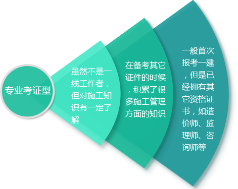 专业考证型学员拥有非常丰富的考证经验,是"久经考验"的老兵。懂得怎样安排自己的学习,也清楚如何把握各科目之间的平衡。