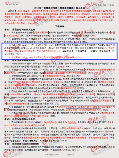 资金时间价值中的有效利率和等值计算式历年考试的重点和难点,2011、2012年都有考题出现,结合一级建造师考试的命题趋势避免繁琐的计算,侧重考查基本的计算能力和理解运用能力,环球网校教研组总结了如上知识点