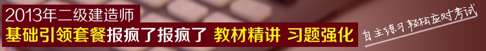 - 环球网校二级建造师频道制定了一个2013年二级建造师考试预学习计划表(包括每科目每周学习的章节内容,需要做的章节练习)。本计划表为二级建造师基础阶段学习计划,帮助考友全面系统的掌握所有知识点。计划于2013年01月01日开始执行,于2013年04月07日结束。考生可根据本表的提示,结合自己的工作,学习情况进行细化,并按网校要求完成听课、做题的学习任务,基本可满足考试需要。同时我们会相继推出习题阶段计划、冲刺阶段计划,敬请期待!【提示,请广大考生朋友们按照本专题的计划选择学习科目,完成每周的学习任务。】