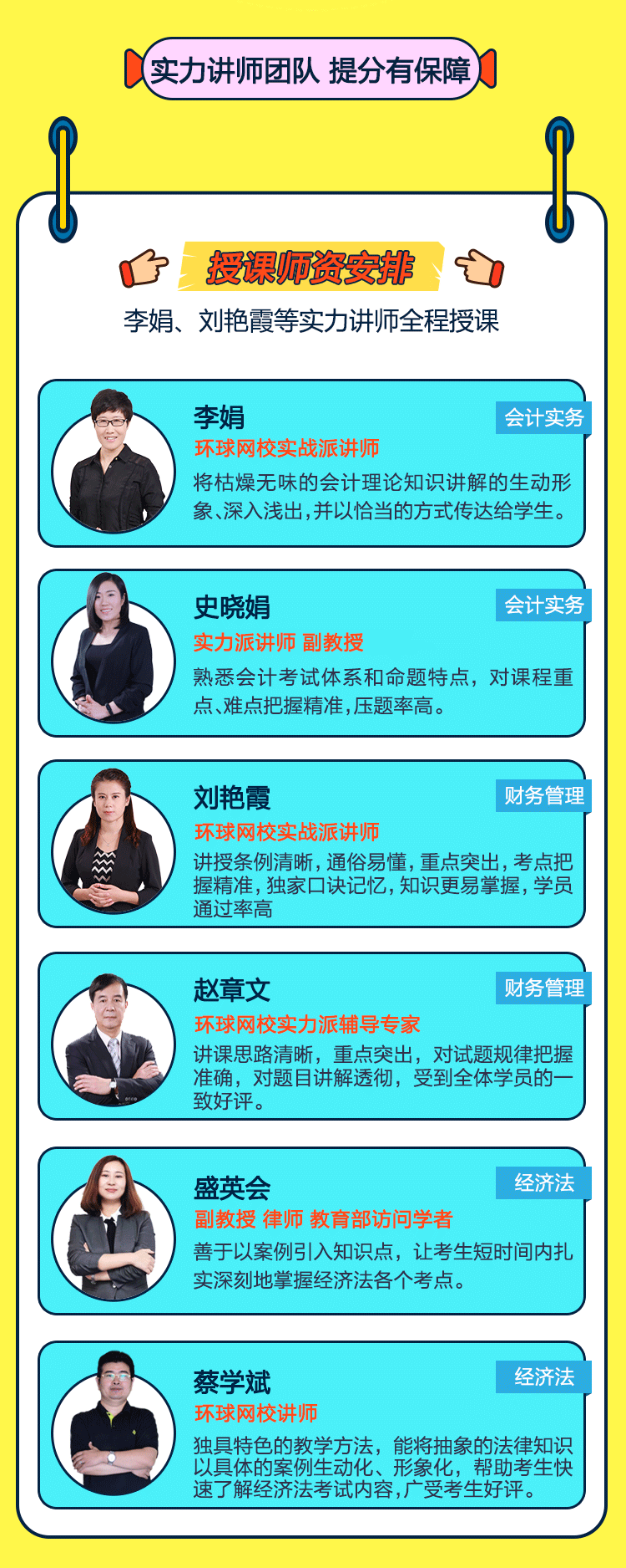 刘艳霞,中级经济师、会计师、注册会计师,环球网校实力派辅导专家,目前国内经济师、会计类辅导的领军人物。从事经济方面的教学近19年,刘老师曾在某著名财经院会计系任职,现应邀在北京各大院校从事会计职称、注册会计师、高教自考等课程的教学工作。