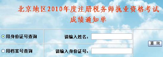 北京2010年注册税务师考试成绩查询