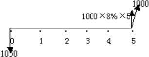 期数是5年,面值是1000,分期付息,票面利率8%,利息都是80(1000×8%),到期按面值还本1000,发行价格是1041,属于是流出,计算债券价值是未来的流入现值,80×PVA6%,5+1000×PV6%,5
