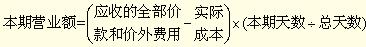以其向承租者收取的全部价款和价外费用(包括残值)减去出租方承担的出租货物的实际成本后的余额,以直线法折算出本期的营业额。计算方法为:
