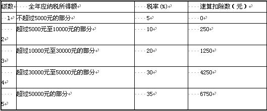 13.2008年4月,中国公民杨某获得所在公司授予的10000股本公司的股票期权,授予价为5元/股。2009年9月,杨某按照公司的规定行权,购买10000股公司的股票,当天公司股票的市场价为11元/股,杨某的月工资收入为4000元。2009年9月杨某应缴纳个人所得税( )元。