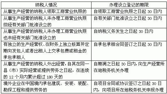 上述规定以外的其他纳税人,除国家机关、个人和无固定生产、经营场所的流动性农村小商贩外,均应当自纳税义务发生之日起30日内,向纳税义务发生地税务机关申报办理税务登记,税务机关核发税务登记证及副本。