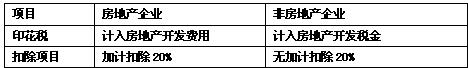 对从事房地产开发的纳税人允许按取得土地使用权时所支付的金额和房地产开发成本之和,加计20%的扣除。