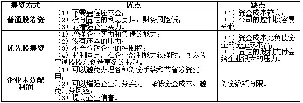 三、权益筹资方式优缺点的比较