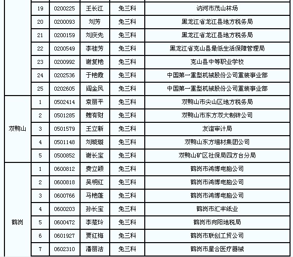 齐齐哈尔/双鸭山/鹤岗/大兴安岭/佳木斯注册税务师考试免试复核通知人员