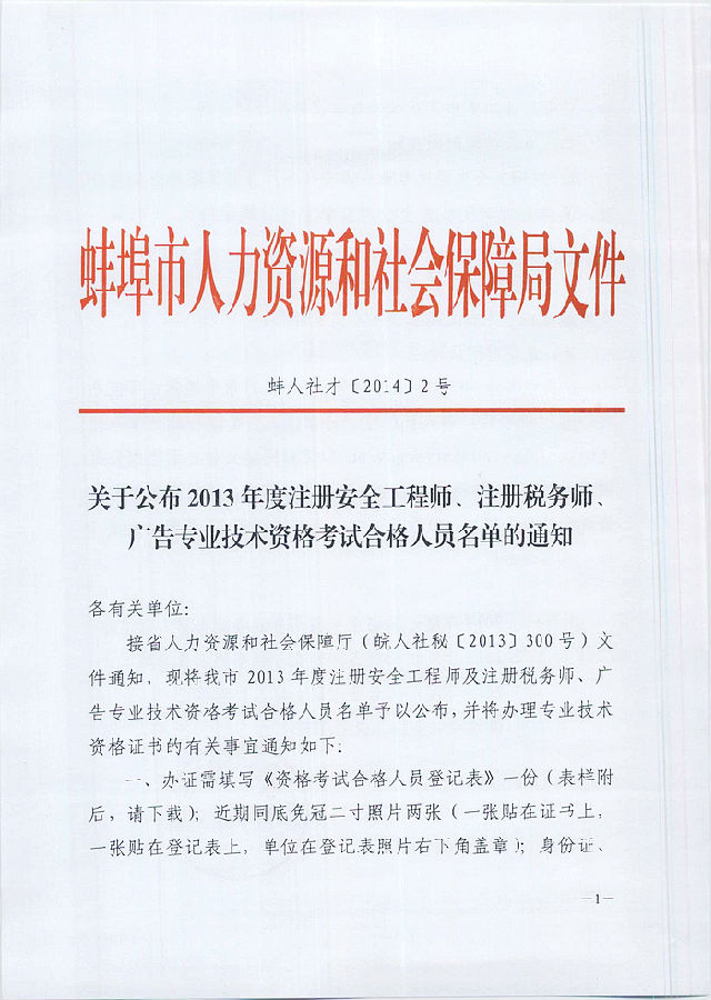 摘要 2013年蚌埠注册税务师合格证书办理通知。