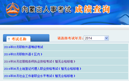 摘要 内蒙古2014年注册税务师成绩查询入口具体查询方式:登录“内蒙古人事考试网”→点击“成绩查询”→2014年06月注册税务师执业资格考试(暂无合格标准)成绩查询。