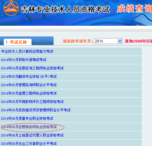 吉林省2014年注册税务师成绩查询入口