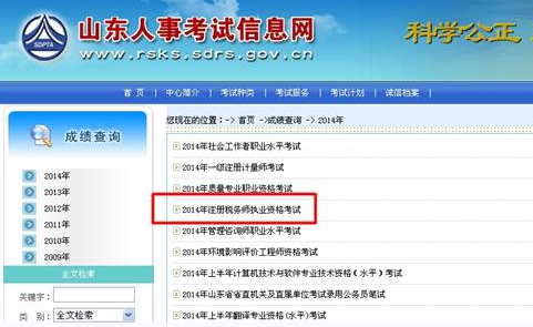 摘要 山东省2014注册税务师成绩查询入口已于8月12日开通。登录“山东人事考试信息网”→点击“成绩查询”→2014年注册税务师执业资格考试。