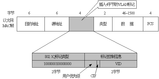 当VLAN数据帧通过trunk链路转发时加入的802.1q标识位于原始以太网帧的()。