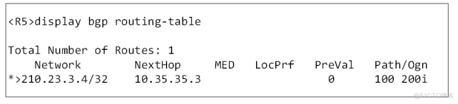 上述配置完成后,路由器R5上210.23.3.4/32的路由信息如下图所示,但是却无法ping通210.23.3.4,请分析原因。
