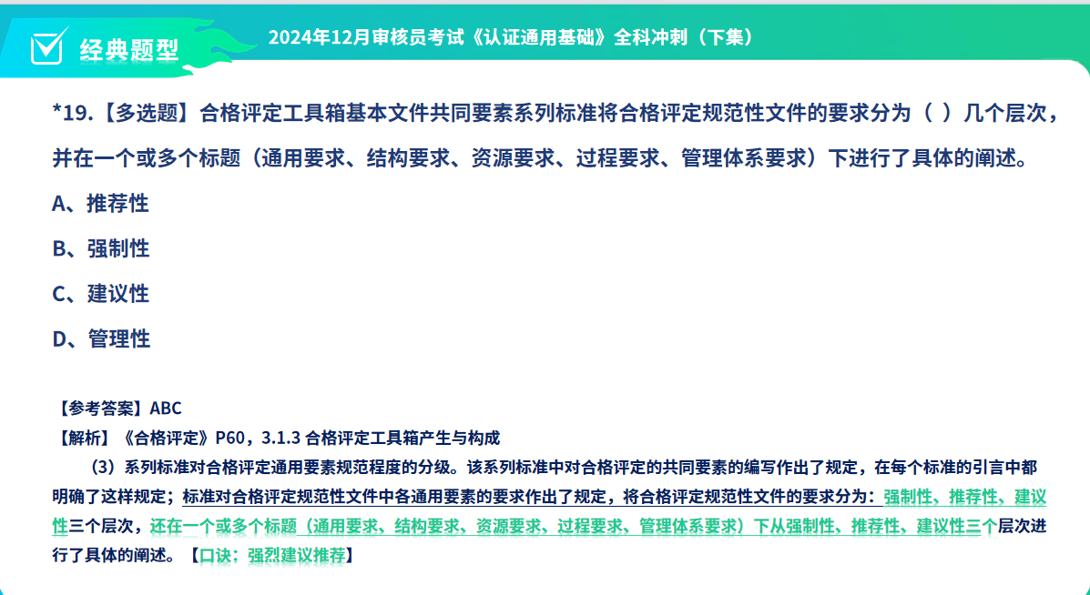 42.合格评定工具箱基本文件共同要素系列标准将合格评定规范性文件的要求分为( )几个层次,并在一个或多个标题(通用要求、结构要求、资源要求、过程要求、管理体系要求)下进行了具体的阐述。