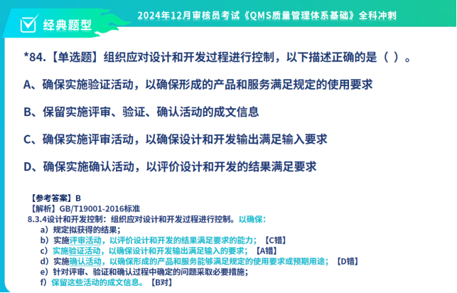 组织对设计和开发过程进行控制的活动指管理评审、设计验证和设计确认