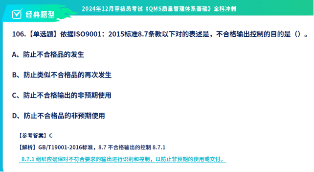 根据GB/T 19001标准,不合格输出控制的目的是( )。