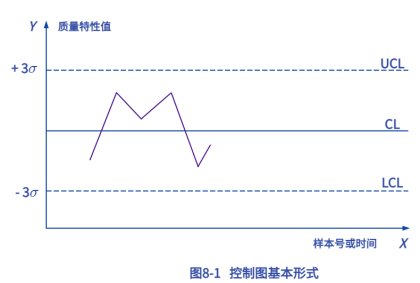 控制图上控制线(UCL)和下控制线(LCL)之间的距离为6σ。