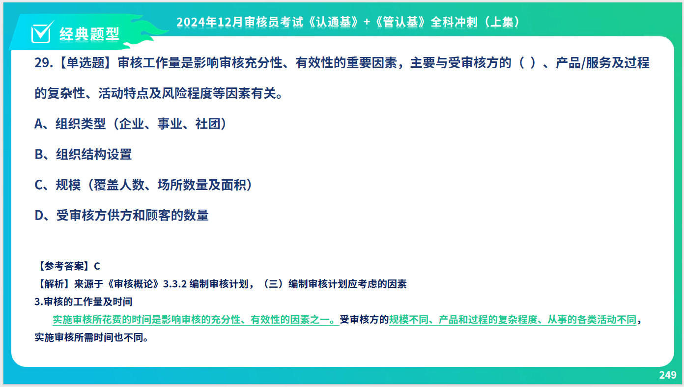 5.审核工作量是影响审核充分性、有效性的重要因素,主要与受审核方的( )、产品/服务及过程的复杂性、活动特点及风险程度等因素有关。
