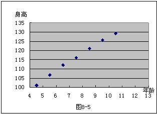 从图中可以看出来,年龄与身高的若干点,大致上分布在某一直线的附近。