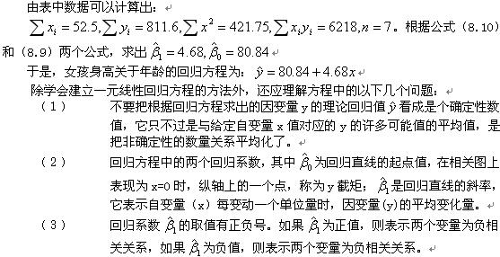 如前面的例3题中,建立身高y与年龄x的线性回归方程。
