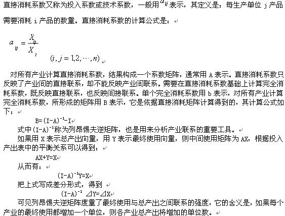 通过对投入产出表进行投入产出分析,可以系统反映产业之间的关联。其基本方法是以第Ⅰ象限为依据,通过中间投入流量计算各产业间的直接消耗系数和完全消耗系数。
