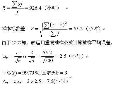 试计算平均耐用时间的抽样平均误差,若以99.73%的概率可靠程度为标准,计算抽样平均数的抽样极限误差。