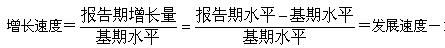 增长速度是报告期增长量与基期水平的比值,表明报告期水平比基期增长(或降低)了百分之几或若干倍。计算公式: