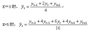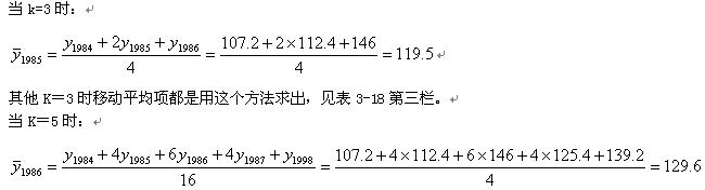 需要指出,采用移动平均法,移动后形成的派生数列的项数要比原时间数列的项数少,按奇数时期项数移动,首尾要各少(k-1)/2项数值,按偶数时期项数移动,首尾要各少(k/2)项数值。因此,用移动平均法只便于求时间数列各期的趋势值和观察长期趋势,而不便直接根据派生数列进行预测。