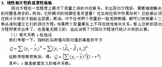 相关系数r是衡量x与y线性相关程度的指标。一般教材中都会附有《相关系数显著性检验表》,表中给出的是相关系数绝对值的临界值。当计算出的变量x与y的相关系数绝对值大于表中临界值时,才可以判定x与y有线性关系。
