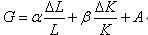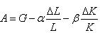 设经济增长率为G,劳动增长率为ΔL/L,资本增长率为ΔK/K,技术进步率为A,则有下列关系式: