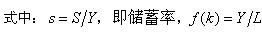 即人均国民收入,储蓄率与国民收入的乘积即sf(k)为人均储蓄,k=K/L,是人均资本存量,n为劳动力增长率或人口增长率,k是为现在劳动力增加配置的资本,被称为资本的深化,nk是为新增劳动力配置的资本,被称为资本的广化。