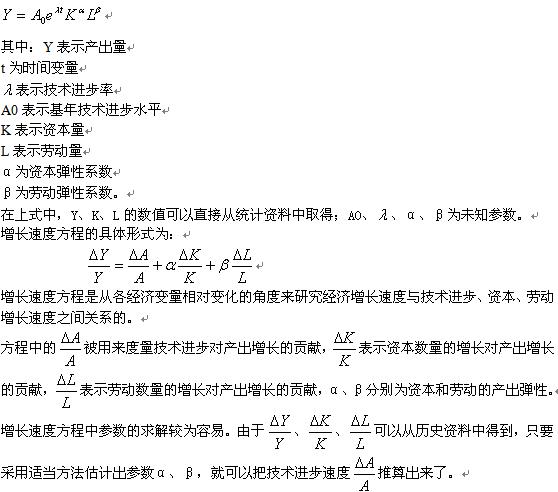 其中Y为产出量,A、K、L分别为技术、资本、劳动等投入要素。