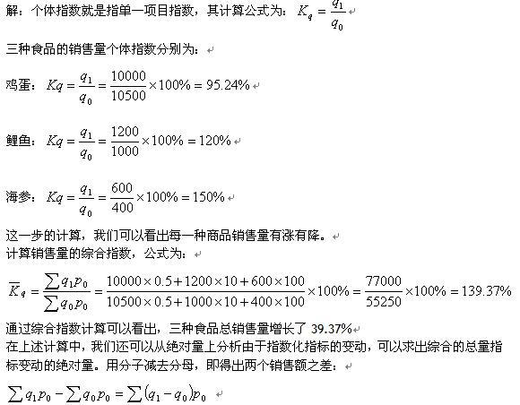 要求计算三种食品的销售量个体指数和综合指数