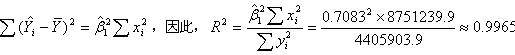 其中,分母为总体平方和,反映样本观测值总体离差的大小;分子为回归平方和,反映由模型中解释变量所解释的那部分离差的大小。对于一个拟合得好的模型,总体平方和与回归平方和应该比较接近。