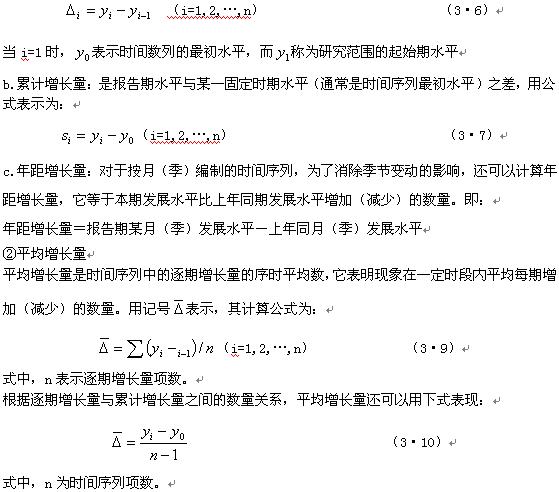 a.逐期增长量:是报告期水平与前一期水平之差,用公式表示为: