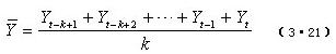 注意:当k取奇数或偶数的不同形式时,处理方法有区别。对于k取奇数时,可直接运用公式(3·21)即可;当k取偶数时,要在第一次对原数列作移动平均后,对所得新数列再做一次相邻两项的移动平均,这样才能完成中心化。