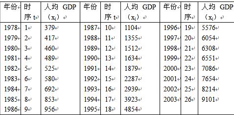 例如,要观察我国改革开放以来人均国内生产总值的变化趋势,可以根据相应年度的统计数据建立动态模型: