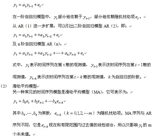 时间序列模型也是应用回归分析的原理,在假定社会经济现象存在序列相关,即某一时期的发展水平和前几期水平相互关联的基础上,将前几期的变量作为自变量而建立的模型。