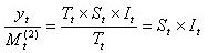 该指标称季节比率,即用原数列各期实际值除以移动平均得出的趋势值T,此比率消除了长期趋势因素的影响。