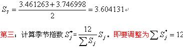 第二步:计算季节比率及其平均数,各个时期的实际值 与相应的中心化移动平均数 的比率显示季节变动和随机变动的综合作用: