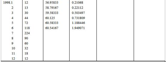 第一步:计算中心化的移动平均数,取k=12,移动平均数需要做两次。第一次前12个数据求平均,依此类推,求出一列数据,再进行二次移动,两两求平均值,得到第3列数据。或者直接使用公式(3·22)直接求出。