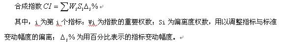 合成指数的编制方法有多种,但最基本或最简单的方法是根据指数的重要性以及与平均变动幅度的偏离度进行加权综合,即