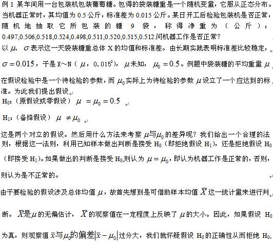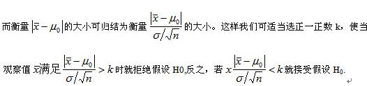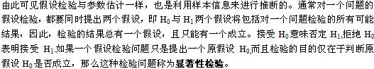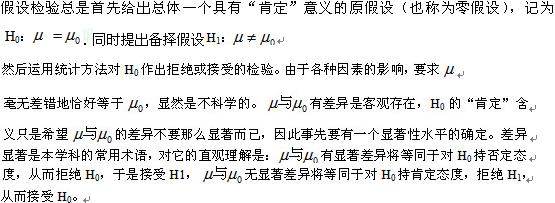 统计推断是一方面通过构造统计量,运用样本信息,实施对总体参数的估计。另一方面是从统计量出发,对总体某些特性的假设作出拒绝或接受的判断,这也就是假设检验所要讨论的中心问题。这一思想相当于数学中的“反证法”。