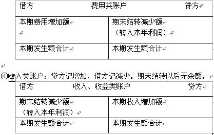 费用类:借方记增加,贷方记减少。期末结转后无余额。