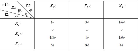 ① 建立判断矩阵。例如有三个指标x1,x2,x3 ,通过老师判断进行两两比较后,其初始权数形成表2-20形式的判断A。