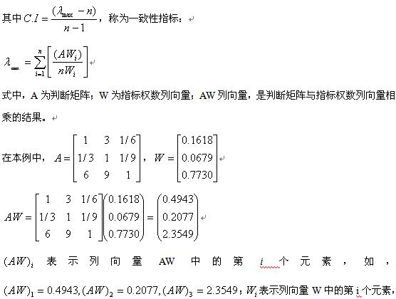 第四步,对判断矩阵的一致性进行检验。
