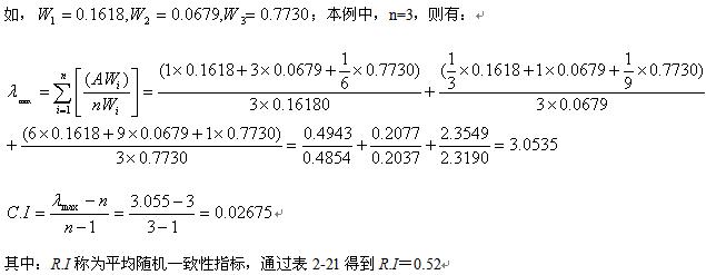 ① 计算随机一致性比率 C.R: C.R=C.I/R.I (2-11)