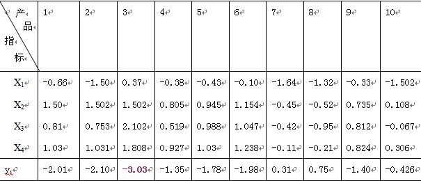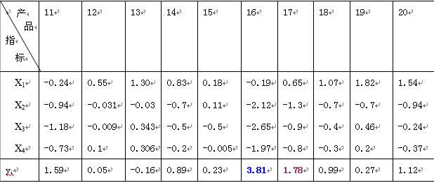 根据综合值即可对各种型号产品的质量进行排序,16号产品的综合值为3.81,在20种产品中最大,排在第一位,03号产品的综合值为-3.03,在20种产品中最小,排在最后一位,其他型号产品依此类推即可。
