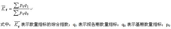 在计算数量指标综合指数时,以能够使数量指标过渡到可以相加的质量指标为同度量因素,并通常将其固定在基期的水平上。数量指标综合指数计算公式如下: